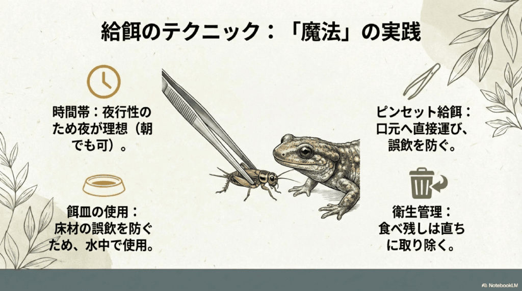 タイガーサラマンダーに餌を与える際は、以下の点に注意する必要があります。