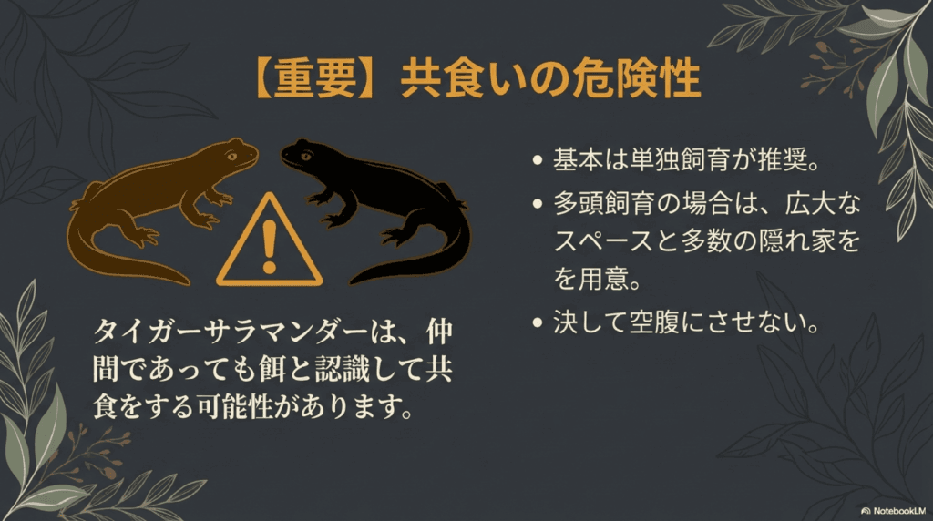 タイガーサラマンダーを飼育する際は、以下の点に注意する必要があります。