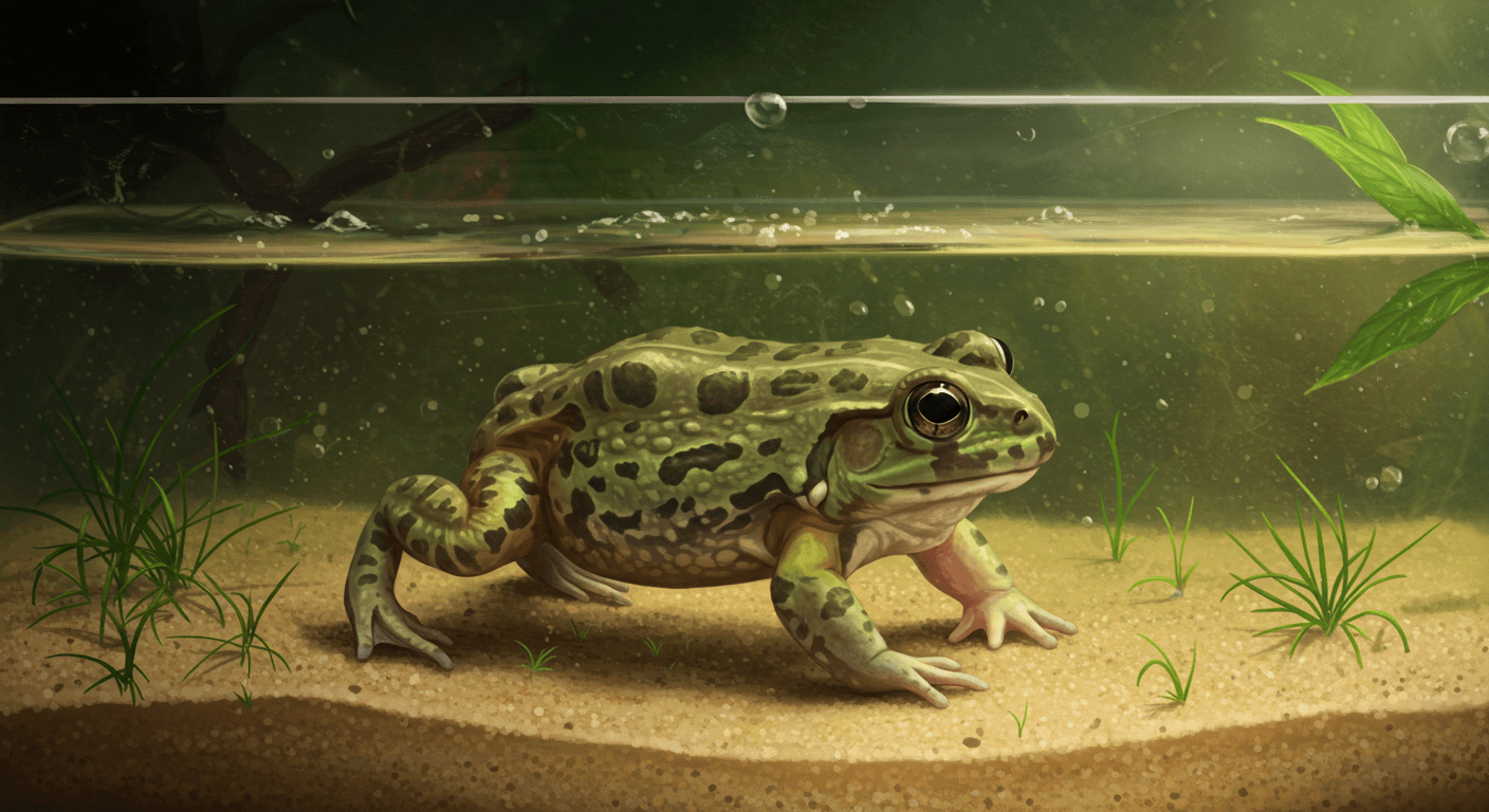 バジェットガエルの平均寿命は 5〜10年程度 とされており、水槽環境が寿命に大きく影響します。水質が悪い、餌が偏っている、隠れ場所が少ないといった環境では、病気やストレスによる死因のリスクが高まります。