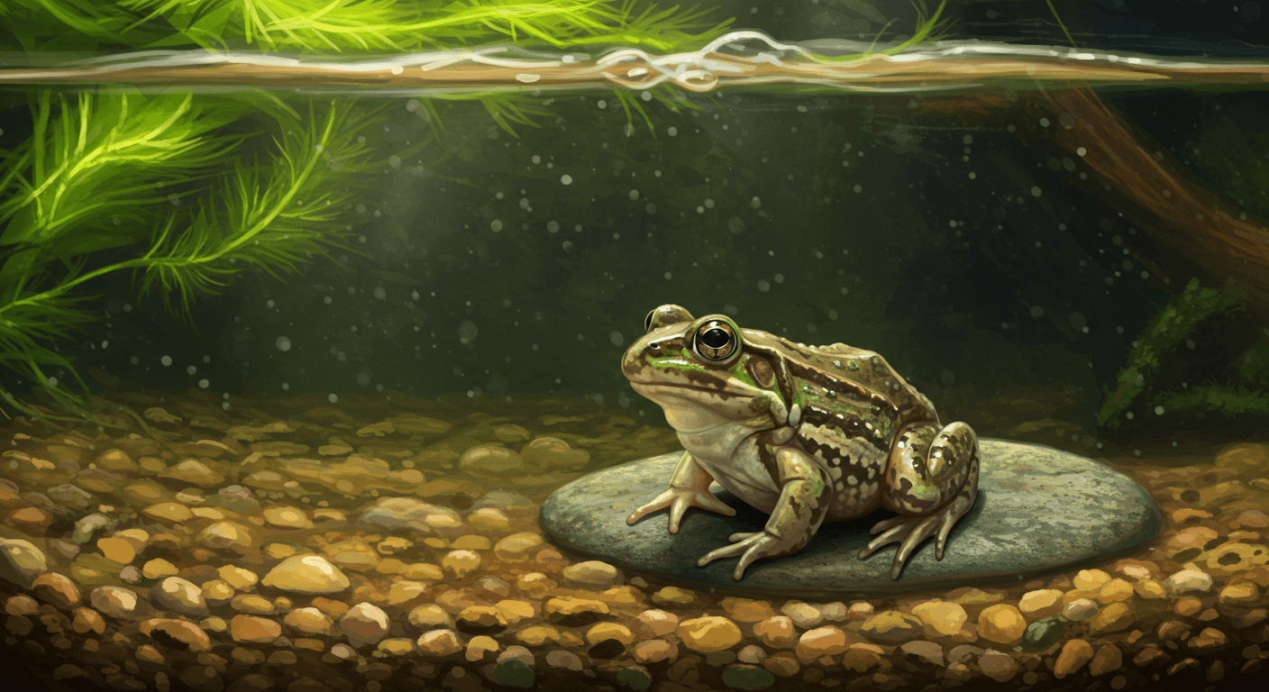 バジェットガエルは水中生活が中心のカエルなので、飼育水槽では水深を十分に確保することが重要です。成体の場合、水深は体長の1.5倍以上を目安にすると、泳ぎやすく安心して潜ることができます。