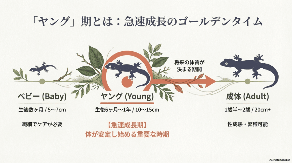 つぶらな瞳と穏やかな性格で、爬虫類ファンを虜にするクレステッドゲッコー。なかでも「ヤング」と呼ばれる成長期の個体は、日に日に大きくなる姿を楽しめる一方で、健やかな成長を支えるための正しい知識が欠かせない時期でもあります。
