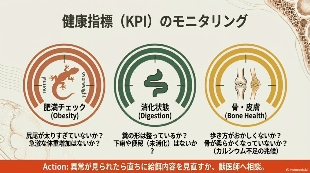 ミルワームを与える際には、レオパードゲッコーの健康状態を定期的にチェックすることが重要です。以下のポイントを観察しましょう