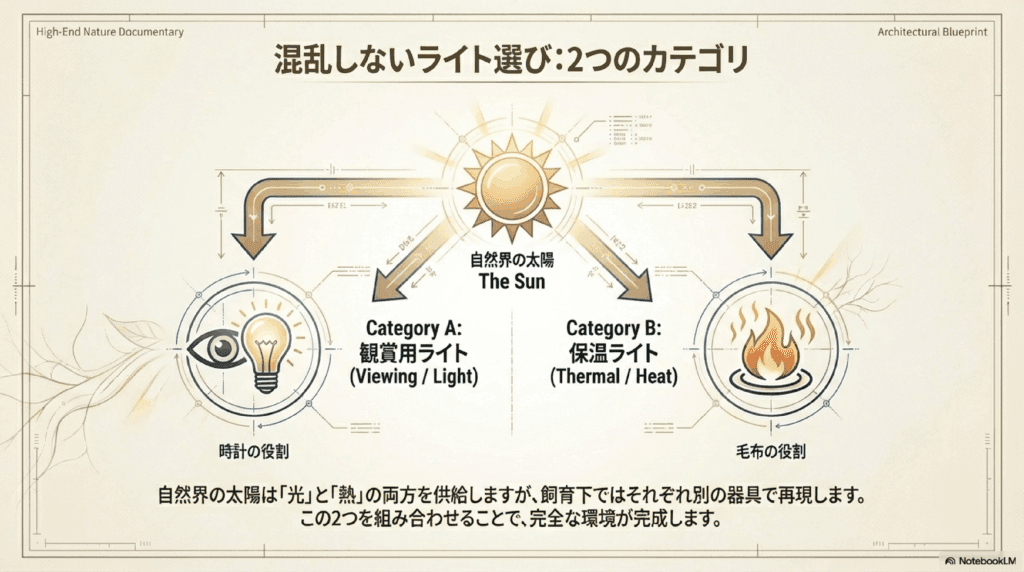 ライトには二つの主な役割があります。まず、レオパードゲッコーが日中に休息するために温かい環境を提供すること。第二に、夜間の温度が急激に下がらないように、夜間でも一定の温度を保つための「保温」の役割です。これらを達成するために、レオパードゲッコーには適切なライトが必要です。