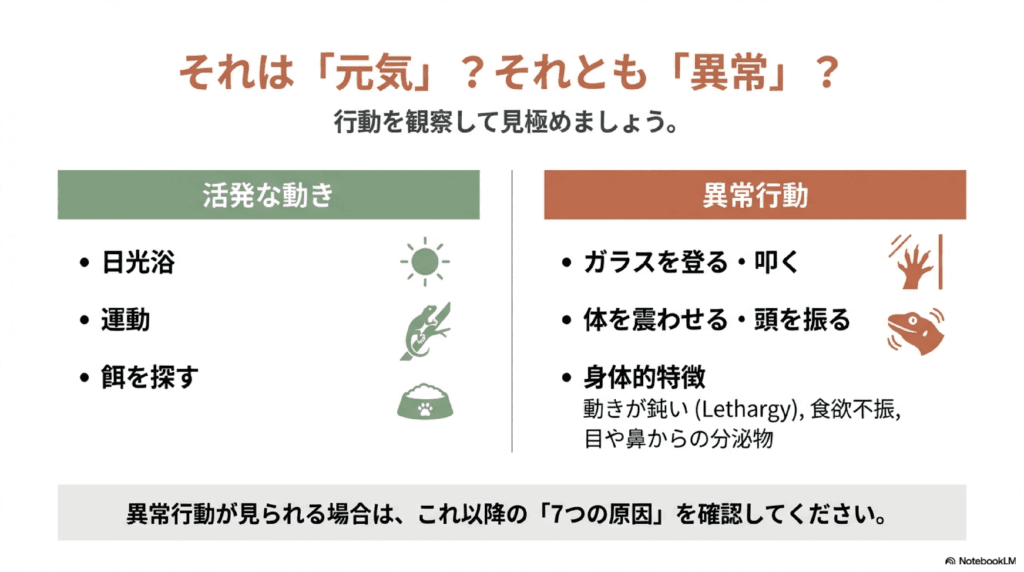 ここでは、フトアゴヒゲトカゲの活発な動きと異常行動の見分け方について詳しく解説します。