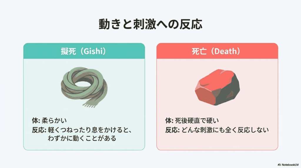 仮死状態中のカナヘビは、ある程度の刺激には反応します。例えば、ピンセットで軽くつまんだり、息を吹きかけたりすると、わずかに動くことがあります。しかし、完全に死んでしまったカナヘビは、どんな刺激を与えても反応しません。