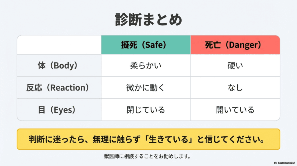 これらのポイントを参考に、カナヘビが仮死状態かどうか判断してみてください。
