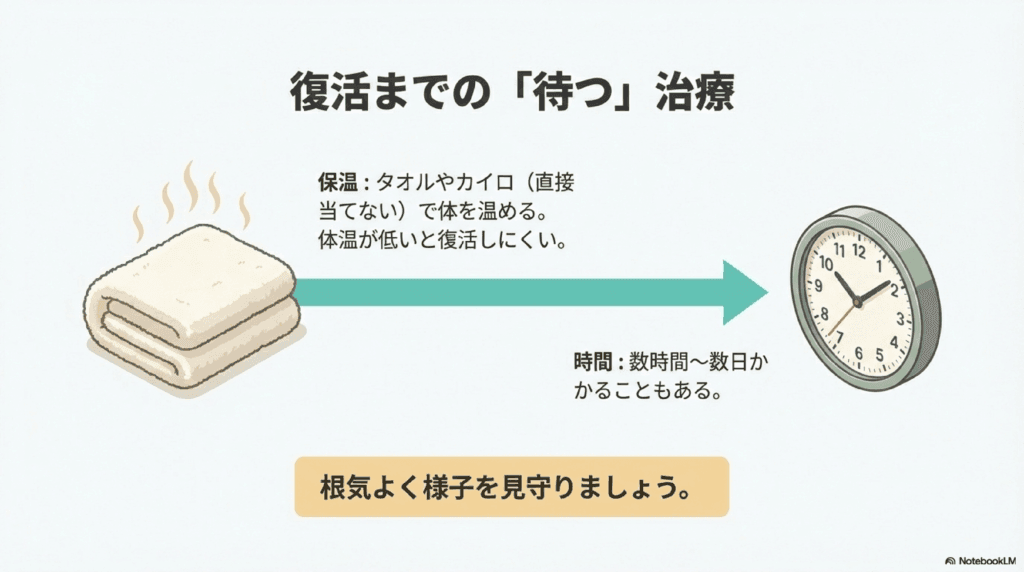 - 温かい場所で様子を見る