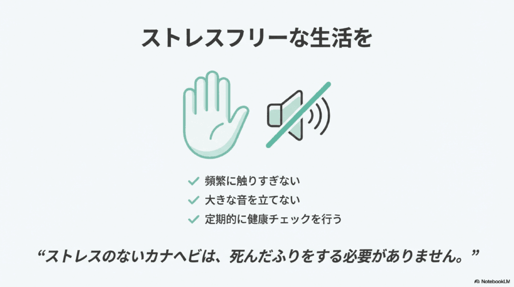カナヘビは、ストレスに弱い生き物です。頻繁にケージを触ったり、大きな音を立てたりすると、ストレスを感じてしまいます。