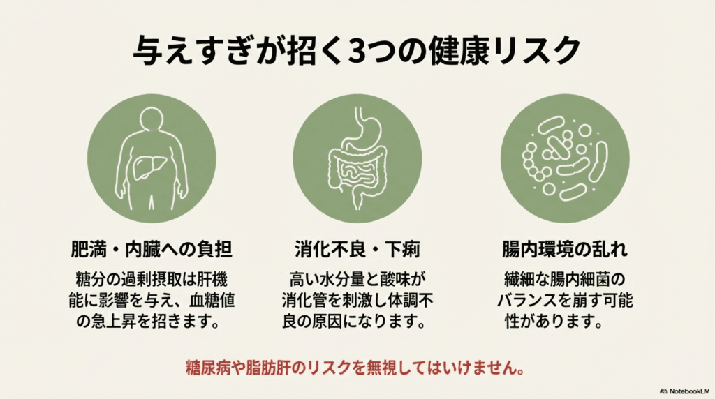 与えすぎることで以下のような健康リスクが発生します: