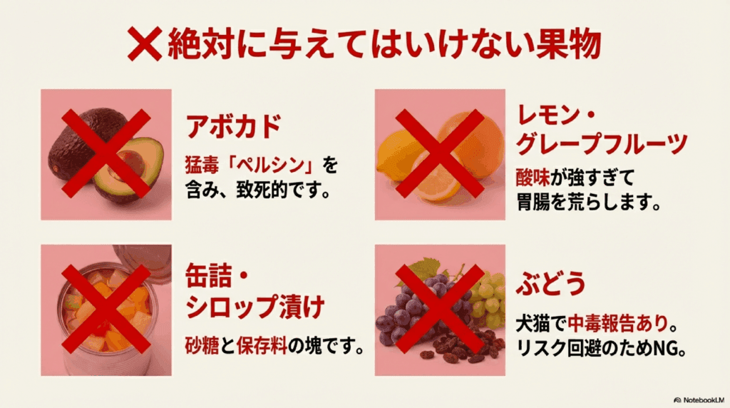 ❌ 与えてはいけない果物の例