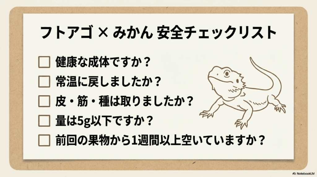 - まとめ:フトアゴヒゲトカゲにみかんを与えるときのポイント