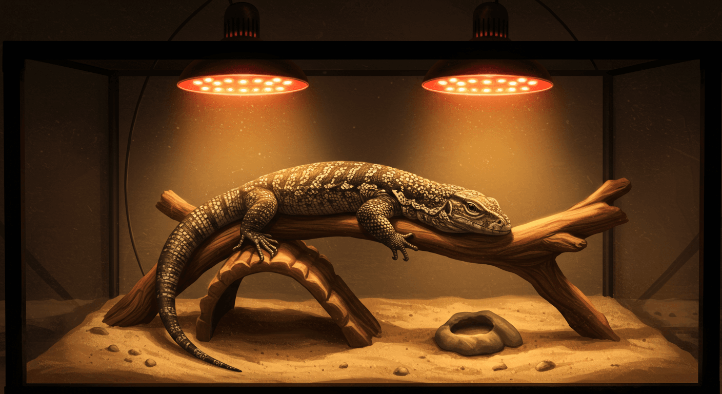 餌の与え方だけでなく、飼育環境もサバンナモニターの健康に直結します。温度や湿度、照明の条件が適切でないと、食欲が落ちたり、消化不良や病気の原因になります。