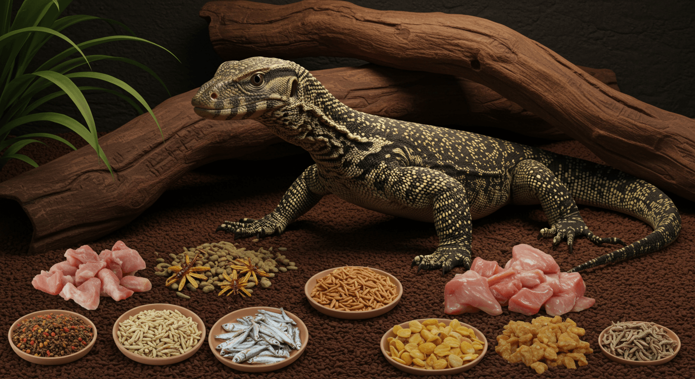 サバンナモニターは肉食性が強く、昆虫や小型哺乳類、鳥類などを食べます。飼育下では以下のような餌が一般的です。