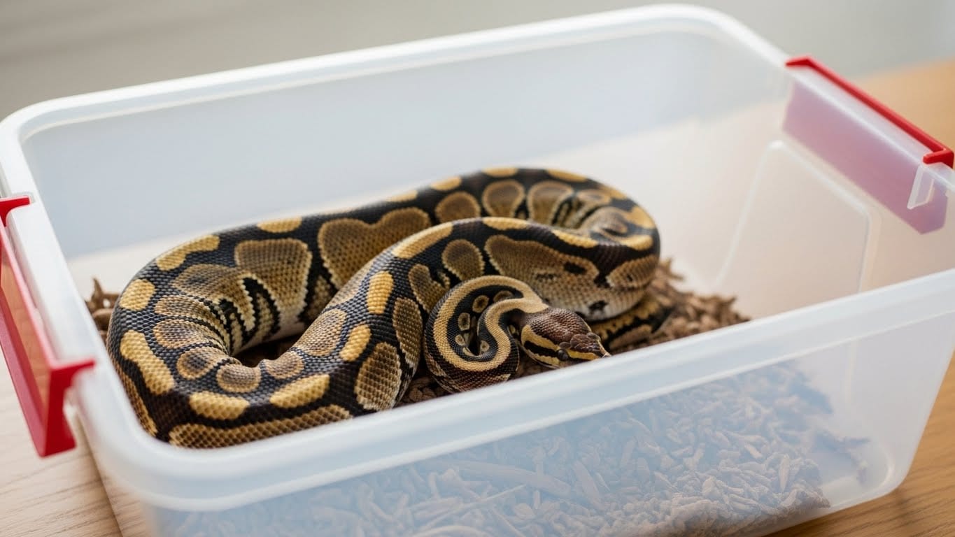 衣装ケース飼育において重要なのは、高さを求めすぎないことです。ボールパイソンは登攀を必要としないため、低めで安定した空間のほうが、事故やストレスを抑えやすくなります。