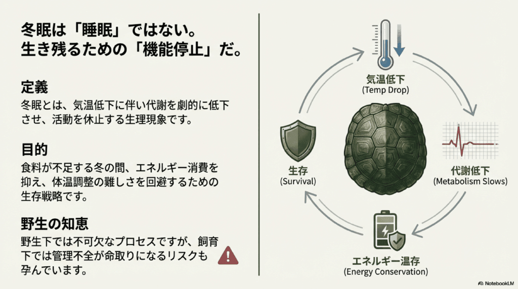 - 亀の冬眠とミイラ化:異常事態の見分け方