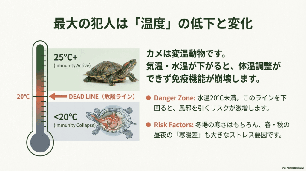 亀が風邪をひく主な原因