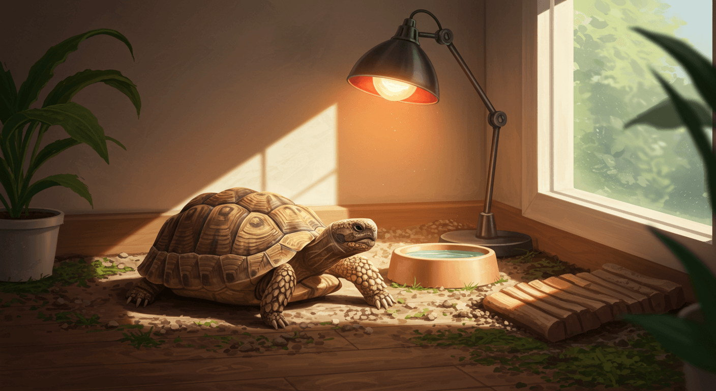ギリシャリクガメは体温調節のため、ケージ内にホットスポット(局所的に暖かい場所)を設置することが重要です。夏場は日中の室温が高くなるため、ホットスポットの温度は30〜35℃程度に調整します。温度が高すぎるとケガや熱中症の原因になるため、必ず温度計で確認しましょう。ホットスポットはケージの一角に設置し、反対側には涼しい場所を作ることで、自由に体温を調整できる環境を作れます。